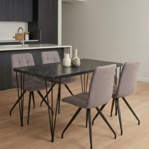 0279569 Σετ τραπεζαρία 5τμχ Roger – Bianca Megapap Mdf – ύφασμα χρώμα μαύρο εφέ μαρμάρου – γκρι 120x70x75εκ. Ύφασμα/MDF, 1 Τεμάχιο