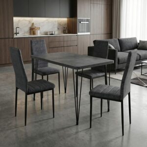 0279646 Σετ τραπεζαρία 5τμχ Roger – Rosa Megapap Mdf – ύφασμα χρώμα σκούρο γκρι σκυροδέματος – γκρι 120x70x75εκ. Ύφασμα/MDF, 1 Τεμάχιο