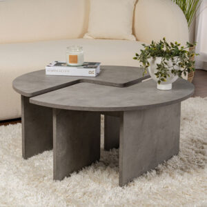 0275227 Τραπεζάκι σαλονιού σετ 2 τμχ Moira Megapap χρώμα γκρι σκυροδέματος Ø90×41εκ. Μοριοσανίδα με επένδυση μελαμίνης, 1 Τεμάχιο