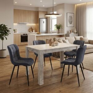 0280950 Σετ τραπεζαρία 5τμχ Darlen – Christy Megapap χρώμα λευκό εφέ μαρμάρου – ανθρακί 125x72x74εκ. Ύφασμα/Μοριοσανίδα με επένδυση μελαμίνης, 1 Τεμάχιο