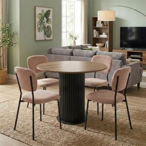 0281217 Σετ τραπεζαρία 5τμχ Bohema – Kevin Megapap χρώμα ivory/sepet oak – μόκα Ø90×77,7εκ. Ύφασμα/Μοριοσανίδα με επένδυση μελαμίνης, 1 Τεμάχιο