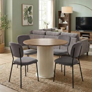 0281214 Σετ τραπεζαρία 5τμχ Bohema – Rosa Megapap χρώμα ivory/sepet oak – γκρι Ø90×77,7εκ. Ύφασμα/Μοριοσανίδα με επένδυση μελαμίνης, 1 Τεμάχιο