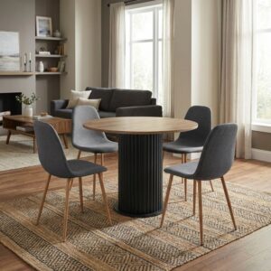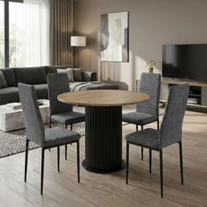 0281358 Σετ τραπεζαρία 5τμχ Bohema – Iris Megapap χρώμα μαύρο/sepet oak – γκρι/φυσικό πόδι Ø90×77,7εκ. Ύφασμα/Μοριοσανίδα με επένδυση μελαμίνης, 1 Τεμάχιο
