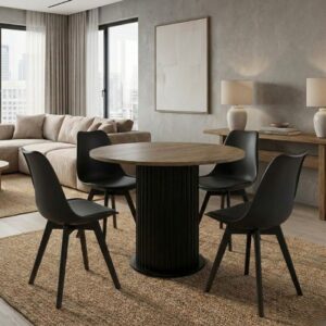 0281352 Σετ τραπεζαρία 5τμχ Bohema – Viva Megapap χρώμα μαύρο/sepet oak – μαύρο/φυσικό πόδι Ø90×77,7εκ. Πολυπροπυλένιο PP/Μοριοσανίδα με επένδυση μελαμίνης, 1 Τεμάχιο