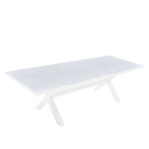 52-0011 SORPRESA ΤΡΑΠΕΖΙ ΕΠΕΚΤΕΙΝΟΜΕΝΟ-Η ΛΕΥΚΟ ΜΕ ΟΨΗ ΜΑΡΜΑΡΟΥ ΛΕΥΚΟ 202x101x77cm Τραπέζι με συγχρονισμένο μηχανισμό επέκτασης. Μήκος με επέκταση: 263cm, 1 Τεμάχιο