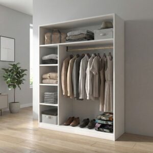 0281316 Ντουλάπα ρούχων ανοιχτή – Έπιπλο εισόδου Sandra Megapap χρώμα λευκό 120x40x150εκ. Μοριοσανίδα με επένδυση μελαμίνης, 1 Τεμάχιο