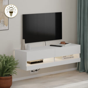 0283222 Έπιπλο τηλεόρασης επιτοίχιο Moon Megapap με LED χρώμα λευκό 120×33,8×30εκ. Μοριοσανίδα με επένδυση μελαμίνης, 1 Τεμάχιο