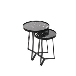 04-0664 JUNGLE SIDE TABLE SET 2ΤΕΜ ΜΑΥΡΟ ΜΕ PATTERN ΜΑΥΡΟ 40x40x50cm Διάσταση μεγάλου:40x40xΥ50cm, Διάσταση μικρού:32x32xΥ45cm, 1 Τεμάχιο