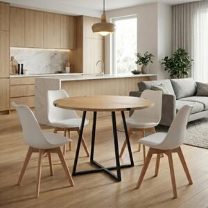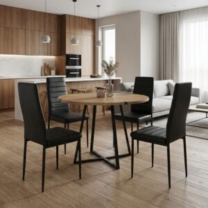 0279680 Σετ τραπεζαρία 5τμχ Rubes – Rosa Megapap χρώμα φυσικό οξιάς – μαύρο Ø100×78εκ. Τεχνόδερμα/Μοριοσανίδα με επένδυση μελαμίνης, 1 Τεμάχιο