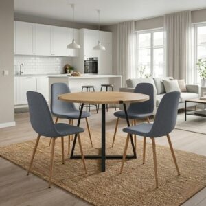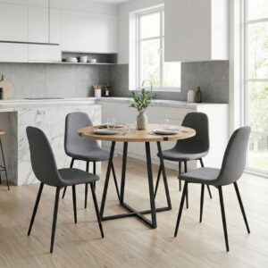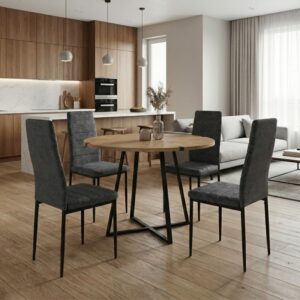 0279681 Σετ τραπεζαρία 5τμχ Rubes – Rosa Megapap χρώμα φυσικό οξιάς – γκρι Ø100×78εκ. Ύφασμα/Μοριοσανίδα με επένδυση μελαμίνης, 1 Τεμάχιο