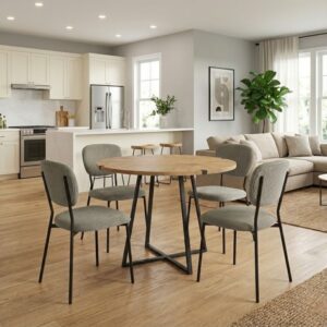 0279691 Σετ τραπεζαρία 5τμχ Rubes – Bianca Megapap χρώμα φυσικό οξιάς – γκρι Ø100×78εκ. Ύφασμα/Μοριοσανίδα με επένδυση μελαμίνης, 1 Τεμάχιο