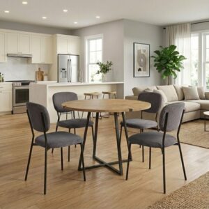 0279697 Σετ τραπεζαρία 5τμχ Rubes – Chiara Megapap χρώμα φυσικό οξιάς – ανθρακί Ø100×78εκ. Ύφασμα/Μοριοσανίδα με επένδυση μελαμίνης, 1 Τεμάχιο