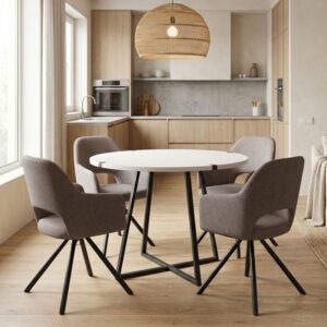 0280377 Σετ τραπεζαρία 5τμχ Rubes – Chiara Megapap χρώμα λευκό – ανθρακί Ø100×78εκ. Ύφασμα/Μοριοσανίδα με επένδυση μελαμίνης, 1 Τεμάχιο