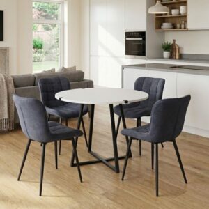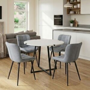 0280371 Σετ τραπεζαρία 5τμχ Rubes – Bianca Megapap χρώμα λευκό – γκρι Ø100×78εκ. Ύφασμα/Μοριοσανίδα με επένδυση μελαμίνης, 1 Τεμάχιο