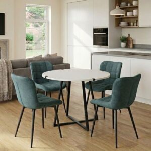 0280379 Σετ τραπεζαρία 5τμχ Rubes – Chiara Megapap χρώμα λευκό – πράσινο Ø100×78εκ. Ύφασμα/Μοριοσανίδα με επένδυση μελαμίνης, 1 Τεμάχιο