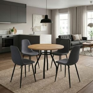 0280434 Σετ τραπεζαρία 5τμχ Roma – Rosa Megapap χρώμα pine oak – γκρι Ø80×75εκ. Ύφασμα/Μοριοσανίδα με επένδυση μελαμίνης, 1 Τεμάχιο