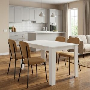 0280734 Σετ τραπεζαρία 5τμχ Darlen – Alma Megapap χρώμα λευκό – μπεζ 125x72x74εκ. Τεχνόδερμα/Μοριοσανίδα με επένδυση μελαμίνης, 1 Τεμάχιο