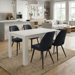 0280730 Σετ τραπεζαρία 5τμχ Darlen – Laura Megapap χρώμα λευκό – ανθρακί 125x72x74εκ. Ύφασμα/Μοριοσανίδα με επένδυση μελαμίνης, 1 Τεμάχιο
