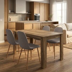 0280808 Σετ τραπεζαρία 5τμχ Darlen – Iris Megapap χρώμα καρυδί – γκρι 125x72x74εκ. Ύφασμα/Μοριοσανίδα με επένδυση μελαμίνης, 1 Τεμάχιο