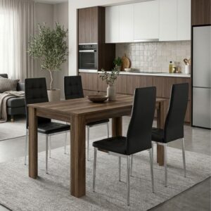 0280812 Σετ τραπεζαρία 5τμχ Darlen – Rosa Megapap χρώμα καρυδί – μαύρο/χρωμίου πόδι 125x72x74εκ. Τεχνόδερμα/Μοριοσανίδα με επένδυση μελαμίνης, 1 Τεμάχιο