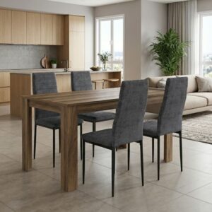 0280819 Σετ τραπεζαρία 5τμχ Darlen – Fina Megapap χρώμα καρυδί – ανθρακί 125x72x74εκ. Ύφασμα/Μοριοσανίδα με επένδυση μελαμίνης, 1 Τεμάχιο