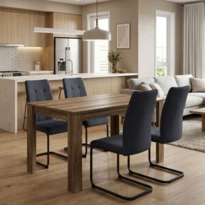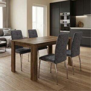 0280820 Σετ τραπεζαρία 5τμχ Darlen – Laura Megapap χρώμα καρυδί – ανθρακί 125x72x74εκ. Ύφασμα/Μοριοσανίδα με επένδυση μελαμίνης, 1 Τεμάχιο
