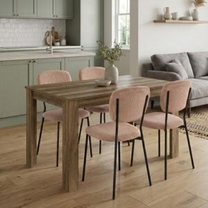 0280832 Σετ τραπεζαρία 5τμχ Darlen – Christy Megapap χρώμα καρυδί – λαδί 125x72x74εκ. Ύφασμα/Μοριοσανίδα με επένδυση μελαμίνης, 1 Τεμάχιο
