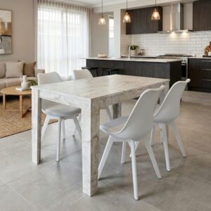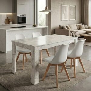 0280923 Σετ τραπεζαρία 5τμχ Darlen – Viva Megapap χρώμα λευκό εφέ μαρμάρου – λευκό 125x72x74εκ. Πολυπροπυλένιο PP/Μοριοσανίδα με επένδυση μελαμίνης, 1 Τεμάχιο