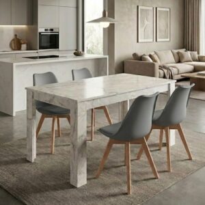 0280920 Σετ τραπεζαρία 5τμχ Darlen – Nova Megapap χρώμα λευκό εφέ μαρμάρου – γκρι 125x72x74εκ. Πολυπροπυλένιο PP/Μοριοσανίδα με επένδυση μελαμίνης, 1 Τεμάχιο