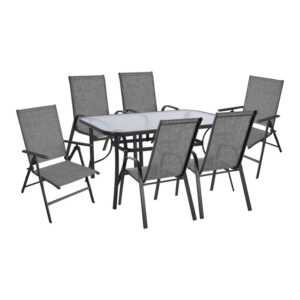 5145.01+5000.41+5700.01Χ2 ΣΕΤ ΤΡΑΠΕΖΑΡΙΑΣ 7ΤΜΧ HM10557.01 ΣΕ ΧΡΩΜΑ ΓΚΡΙ-ΜΕΤΑΛΛΟ ΚΑΙ TEXTILENE 6 θέσεων , 1 Τεμάχιο