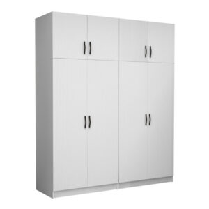 0260830 Ντουλάπα ρούχων Victoria Megapap πεντάφυλλη με πατάρι και συρτάρια χρώμα λευκό 250x60x240εκ. Μοριοσανίδα με επένδυση μελαμίνης, 1 Τεμάχιο