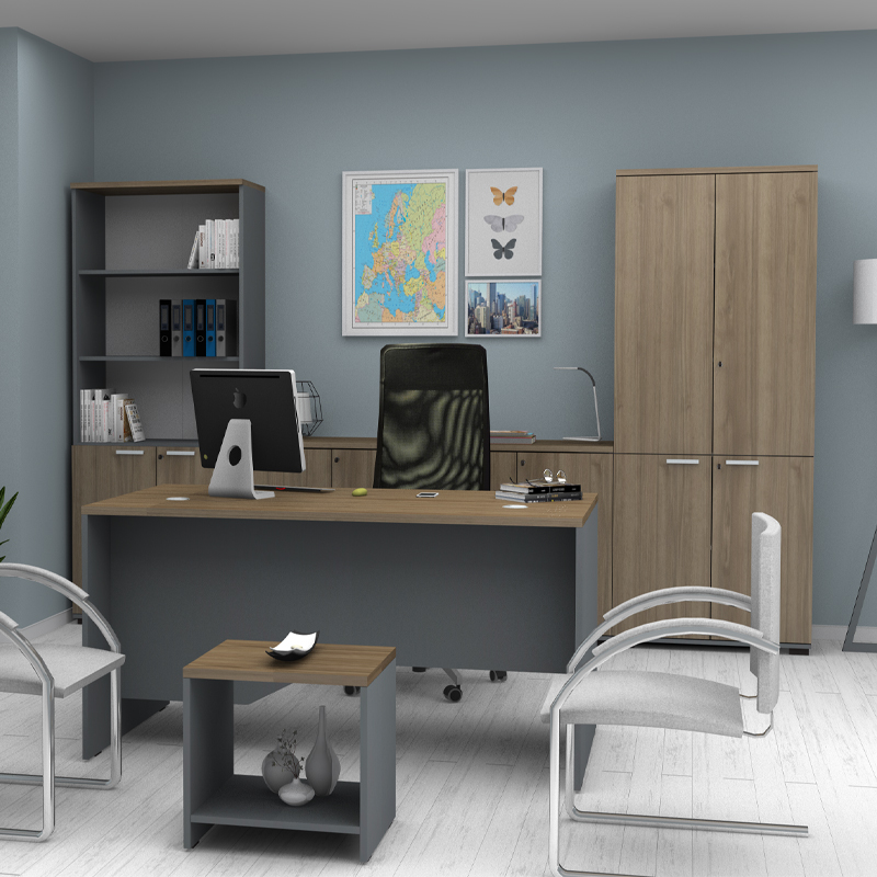Το γραφείο της σειράς Venturo προσφέρει έναν ευρύχωρο και οργανωμένο χώρο εργασίας, ιδανικό για κάθε επαγγελματικό περιβάλλον. Οι καθαρές, μοντέρνες γραμμές και η στιβαρή κατασκευή συνδυάζουν ανθεκτικότητα με κομψή αισθητική. Το γραφείο αυτό συνδυάζεται αρμονικά με τις βιβλιοθήκες, τις συρταριέρες και τα ντουλάπια της ίδιας σειράς, δημιουργώντας έναν πλήρως οργανωμένο και αρμονικό χώρο εργασίας.