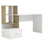Μοντέρνο γραφείο με ενσωματωμένη βιβλιοθήκη, κατασκευασμένο από μελαμίνη υψηλών προδιαγραφών, σε διακριτική διχρωμία από λευκή και sonama απόχρωση.