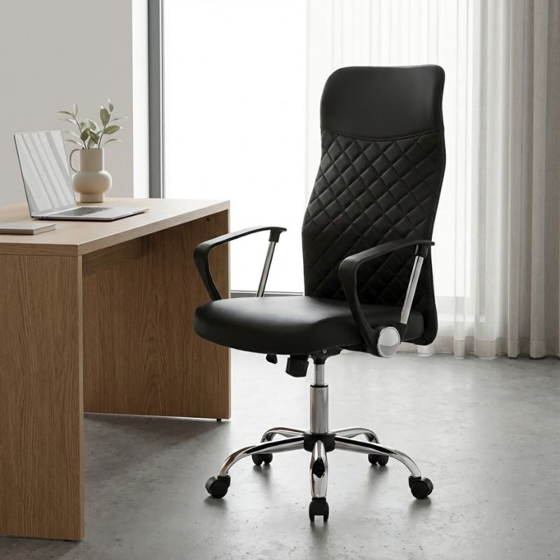 0276192 Καρέκλα γραφείου Novaro Megapap από τεχνόδερμα χρώμα μαύρο 61x68x111/121εκ. Τεχνόδερμα, 1 Τεμάχιο