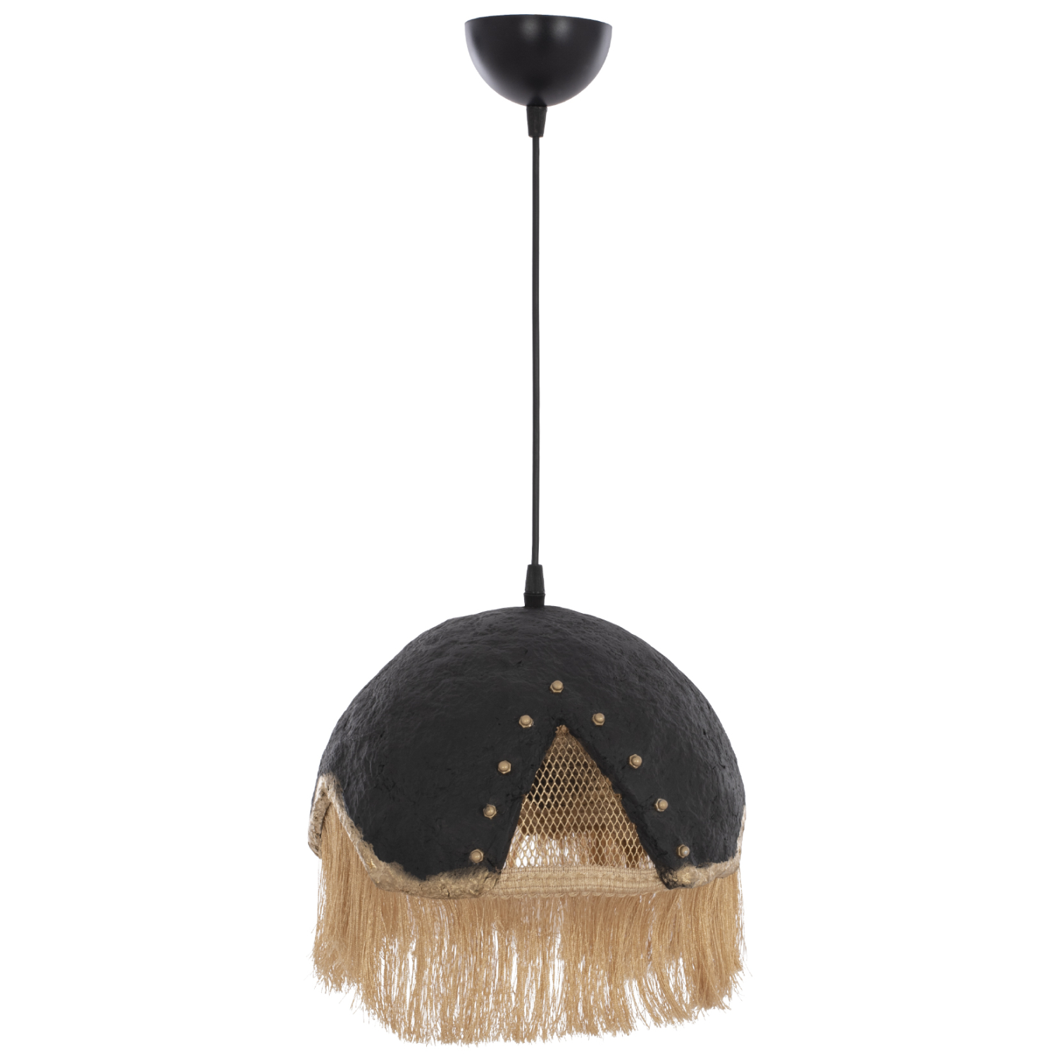 Hm7693.01-κρεμαστό φωτιστικό —-Αφήστε το φως να απλωθεί στον χώρο με ένα πρωτότυπο μονόφωτο οροφής, ολοκληρώνοντας την διακόσμησή σας. Το «καπέλο» του φωτιστικού αποτελείται από ένα σφαιρικό κομμάτι σε ιδιαίτερο ημισφαιρικό σχήμα και είναι η επιτομή του μοντέρνου design. Η διαφορετική «πινελιά» αυτού του κρεμαστού μονόφωτου είναι το χρυσό μεταλλικό πλέγμα στο εσωτερικό μέρος και τα μπεζ κρόσια που ολοκληρώνουν αισθητικά αυτό το πολύ ιδιαίτερο φωτιστικό.
