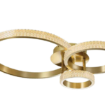 Κρεμαστό μοντέρνο φωτιστικό LED αλουμινίου με στρογγυλή σχεδίαση "δαχτυλίδι" σε χρυσό χρώμα. Συνδυάζει αρμονικά το μέταλλο και το διάφανο ακρυλικό για ένα ιδιαίτερο αποτέλεσμα και μπορεί να διακοσμήσει μοναδικά μοντέρνους αλλά και πιο κλασικούς χώρους.