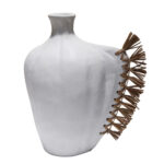 Το επιτραπέζιο χειροποίητο διακοσμητικό βάζο JEBB διαθέτει στενό στόμιο και είναι ένα πολύ ιδιαίτερο διακοσμητικό στοιχείο για κάθε χώρο. Ακολουθώντας την τελευταία τάση στην εσωτερική διακόσμηση, είναι κατασκευασμένο εξολοκλήρου από σχεδόν σαγρέ τερακότα σε ΜΑΥΡΟ χρώμα, ενώ στην μία πλευρά διαθέτει διακόσμηση με αποξηραμένο grass.