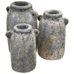 Τα διακοσμητικά βάζα ΗΜ7711 θα δώσουν μια άλλη «οπτική» στον χώρο σας. Πρόκειται για 3 βάζα σε κλασική γραμμή σε διαφορετικές διαστάσεις φτιαγμένες από τερακότα και το χρώμα τους είναι το παλαιωμένο ΑΝΘΡΑΚΙ.
