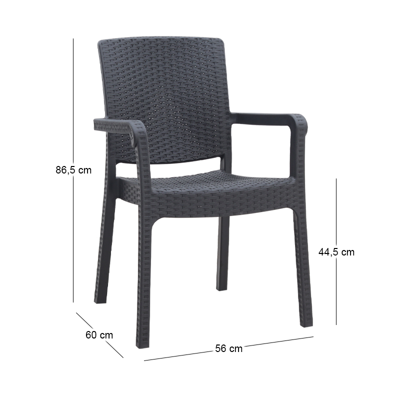 Πολυθρόνα κήπου πολυπροπυλενίου με πλέξη ραττάν χρώμα μαύρο 56x60x86,5εκ.