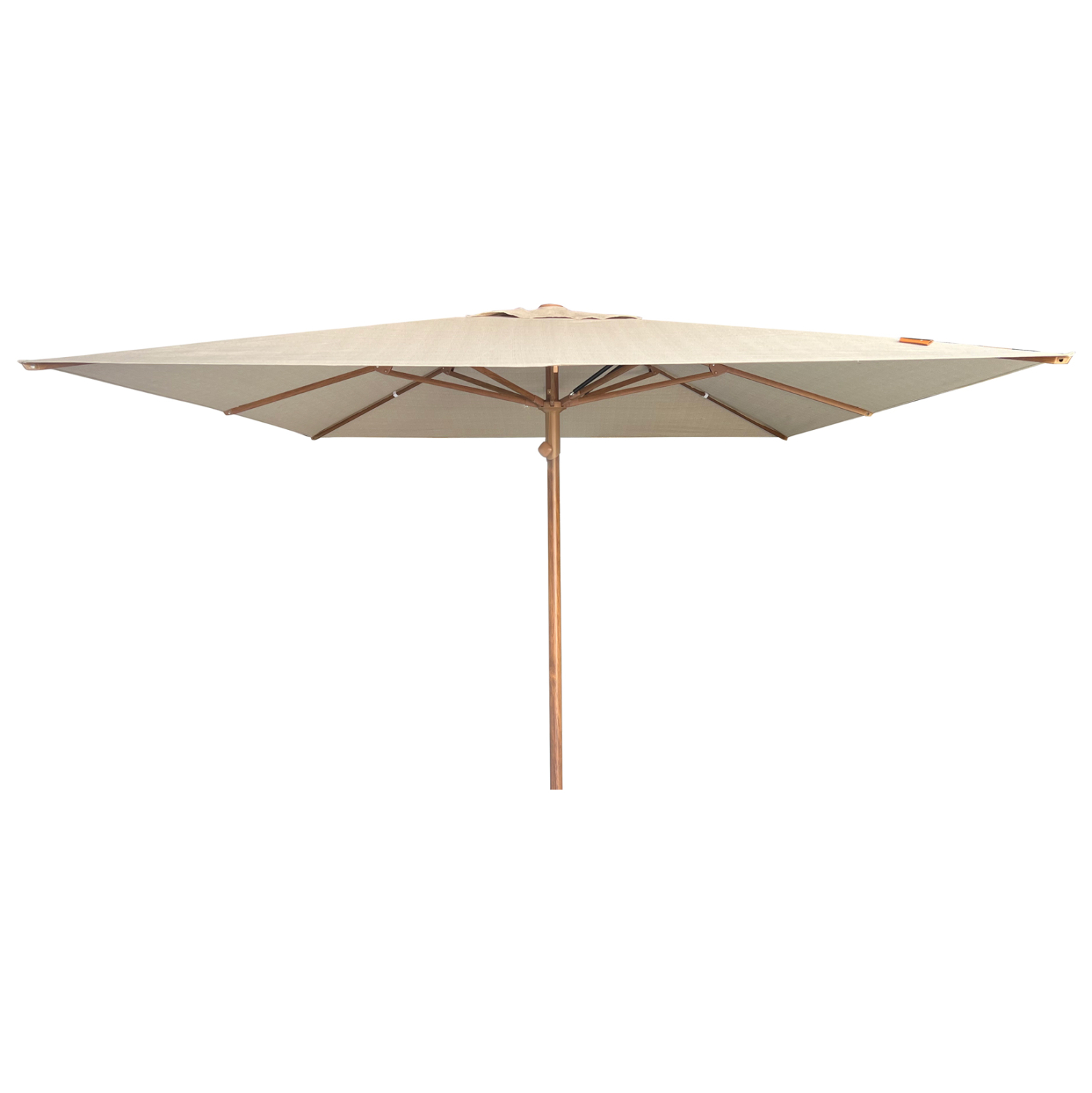 •Διάμετρος σκίαστρου: 3×3 μέτρα μονοκόμματο χωρίς περιμετρικά flaps—Spun Polyester υδατοαπωθητικό (όχι πλήρως αδιάβροχο) ύφασμα 300g με προστασία από τον ήλιο UV50+. Το spun poly (spun polyester) είναι ένας τύπος πολυεστερικού υφάσματος που δημιουργείται από ίνες πολυεστέρα, και σε αντίθεση με τον απλό πολυεστέρα δίνουν στο τελικό ύφασμα μια αίσθηση και εμφάνιση που θυμίζει βαμβάκι, διατηρώντας παράλληλα τις ανθεκτικές ιδιότητες του πολυεστέρα.