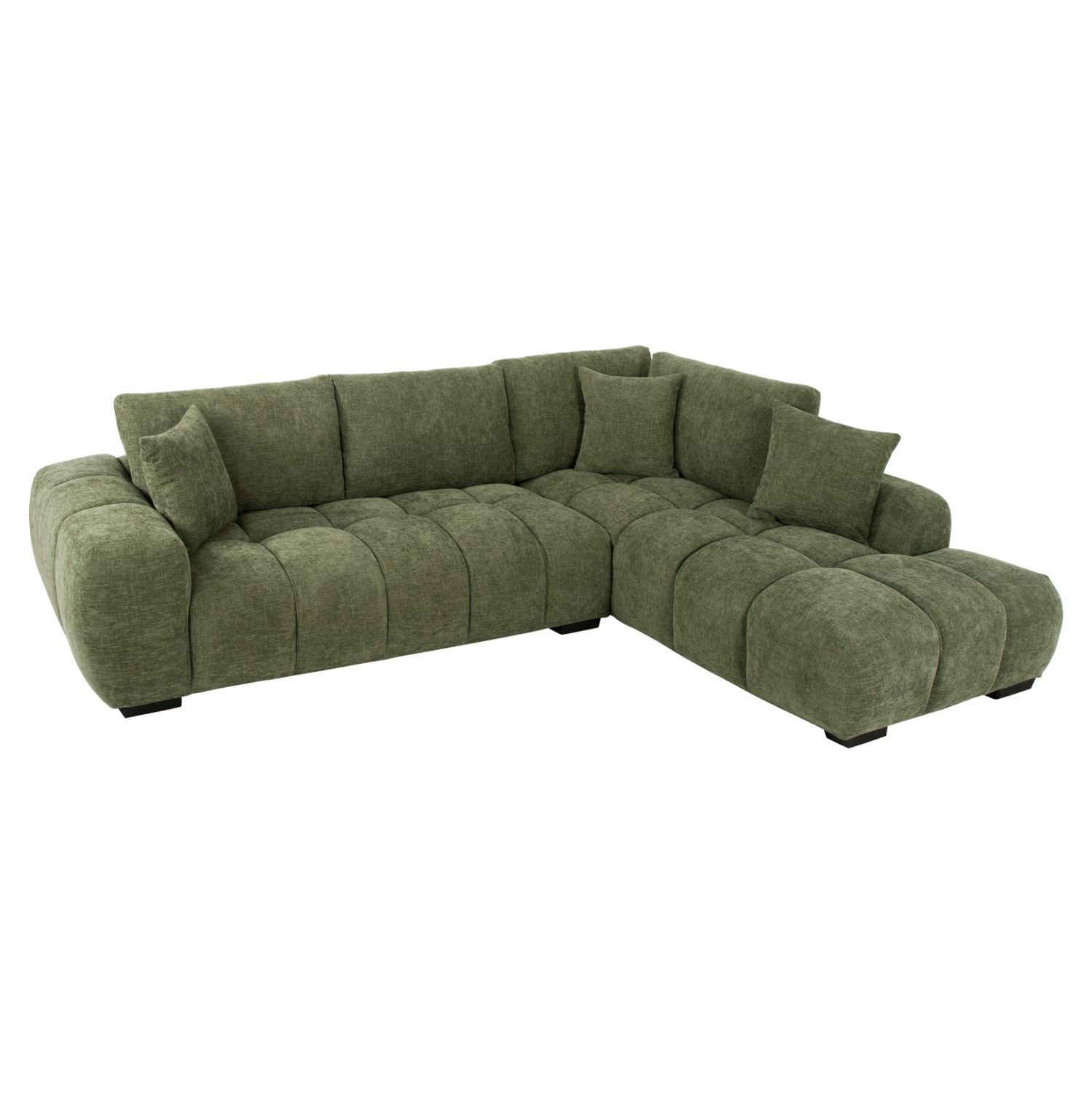 Σας παρουσιάζουμε τον COVEN, έναν υπέροχο μεγάλο καναπέ σε διαμόρφωση ΔΕΞΙΑΣ γωνίας (όπως τον κοιτάς) επενδυμένο με ποιοτικό ύφασμα σε ΠΡΑΣΙΝΟ χρώμα. Ξεκινώντας από το design, ο καναπές φτάνει μέχρι πολύ χαμηλά σε στυλ «ποδιάς» και διαθέτει φαρδιά χαμηλά πόδια-βάσεις σε μαύρο χρώμα. Τα μπράτσα είναι εντυπωσιακά φαρδιά, ενώ η επένδυση είναι σε στυλ καπιτονέ με τις έντονες ραφές! Το κομμάτι που σχηματίζει την γωνία είναι ίδιας αισθητικής και ενώνεται με τον κυρίως καναπέ με κατακόρυφους αναρτήρες πάνελ. Η πλάτη είναι χαμηλή και διαθέτει 4 μαξιλάρια πλάτης με «καραμέλες»(μακρόστενα κυλινδρικά μαξιλάρια) στο πίσω μέρος τους για καλύτερη στήριξη, αλλά και 3 μικρότερα διακοσμητικά μαξιλαράκια. Το κάθισμα διαθέτει γεμίσματα αφρού μεσαίας σκληρότητας σε συνδυασμό με ελατήρια pocket springs, προσφέροντας απαράμιλλη άνεση. Και φυσικά, σας προσφέρουμε αυτόν τον καναπέ με εγγύηση σκελετού 3 ετών!