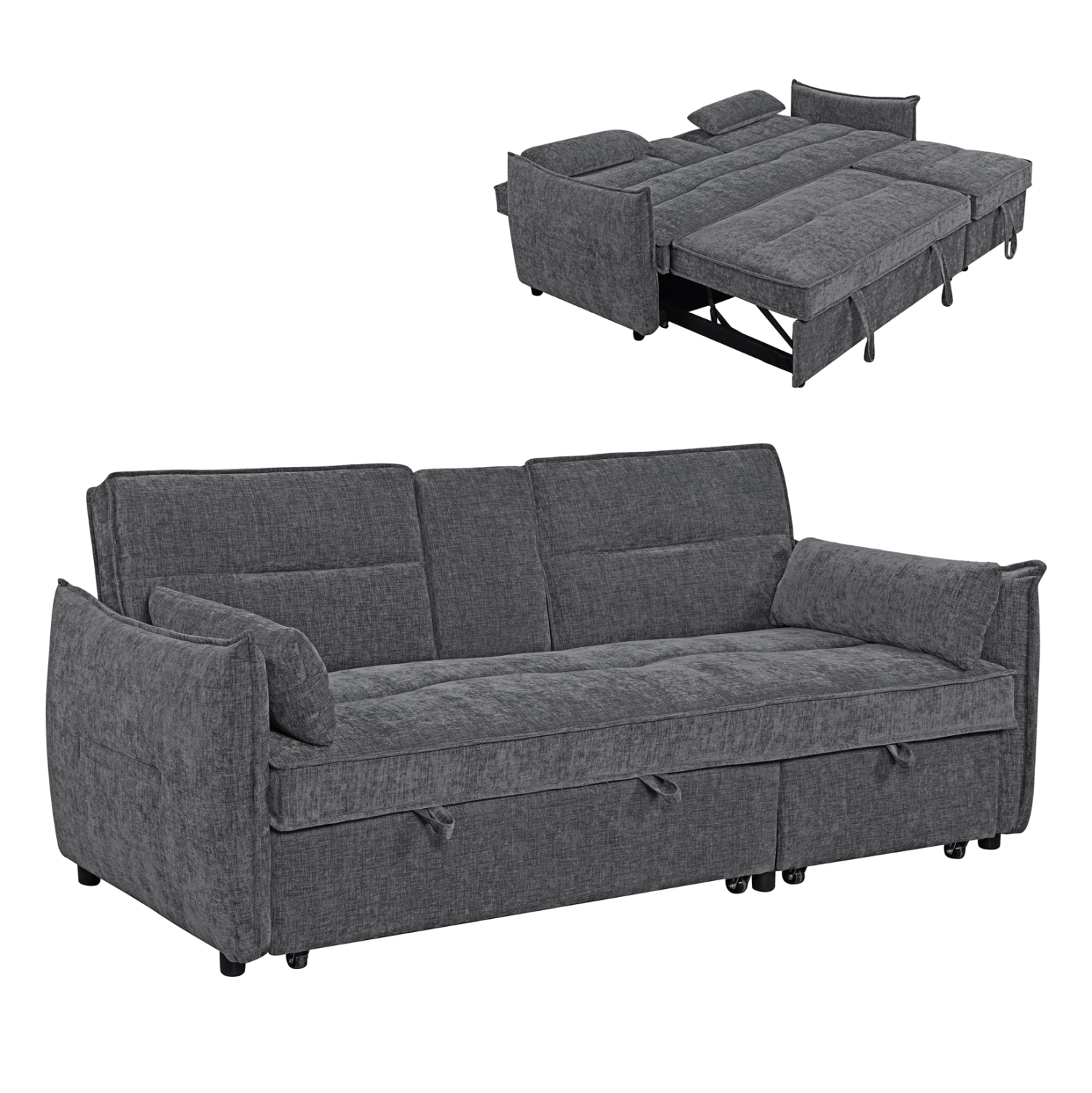 • Διπλός συρόμενος μηχανισμός: τα κρεβάτια τραβιούνται με ιμάντα κάτω από το κάθισμα.