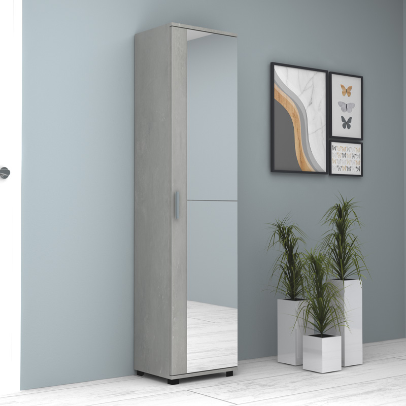 0242243 Ντουλάπα ρούχων – παπουτσοθήκη Visla Megapap μονόφυλλη με καθρέπτη χρώμα γκρι σκυροδέματος 45x36x187εκ. Μοριοσανίδα με επένδυση μελαμίνης, 1 Τεμάχιο16 Ιουλίου 2024