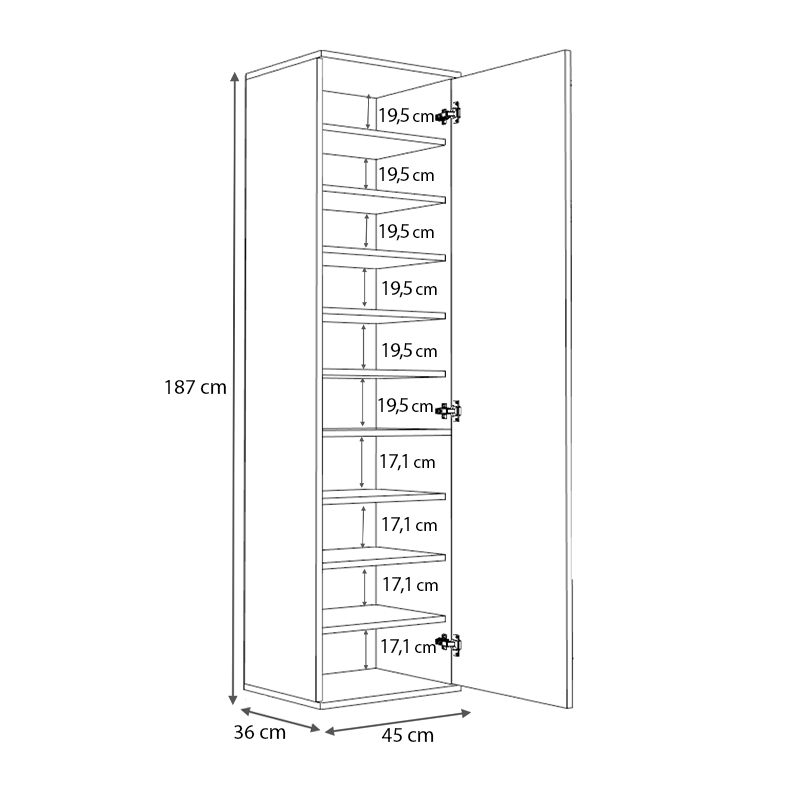 | Διαστάσεις | Μήκος 45 x Βάθος 36 x Ύψος 187 |