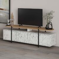Έπιπλο τηλεόρασης Hanley Megapap από μελαμίνη χρώμα λευκό εφέ μαρμάρου 160×35,6×48εκ.