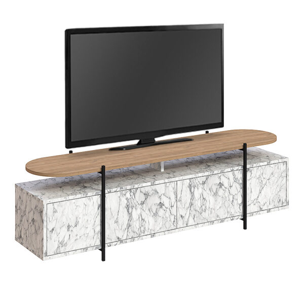 0214163 Έπιπλο τηλεόρασης Hanley Megapap από μελαμίνη χρώμα λευκό εφέ μαρμάρου 160×35,6×48εκ. Μοριοσανίδα με επένδυση μελαμίνης, 1 Τεμάχιο