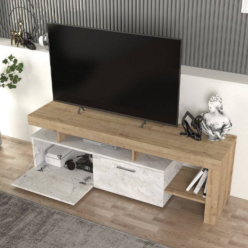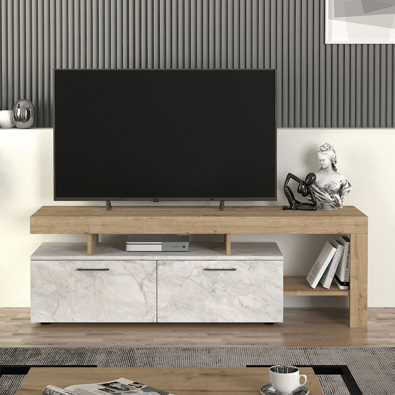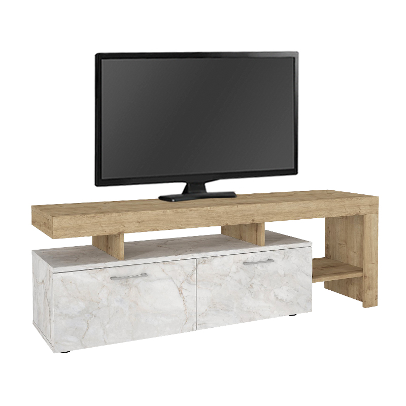 Έπιπλο τηλεόρασης Acnes Megapap χρώμα λευκό εφέ μαρμάρου – sapphire oak 160x40x53εκ.