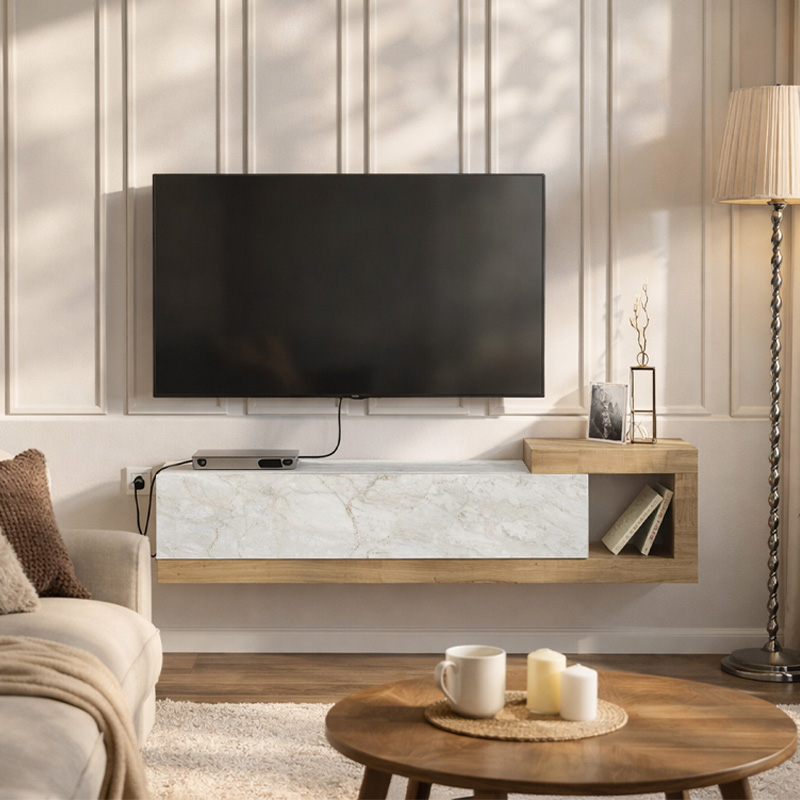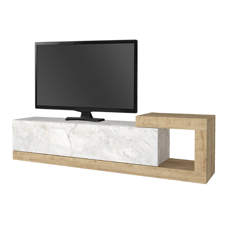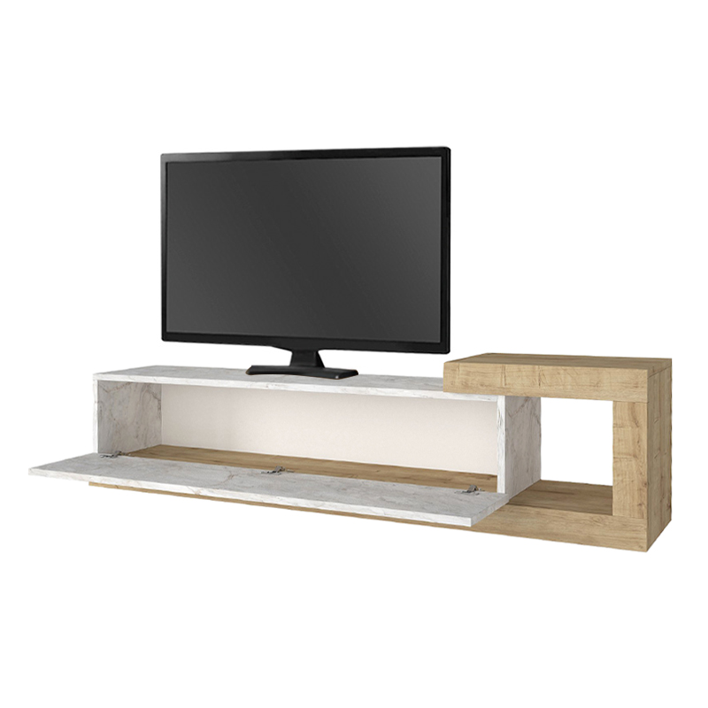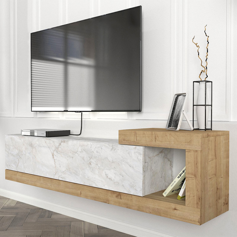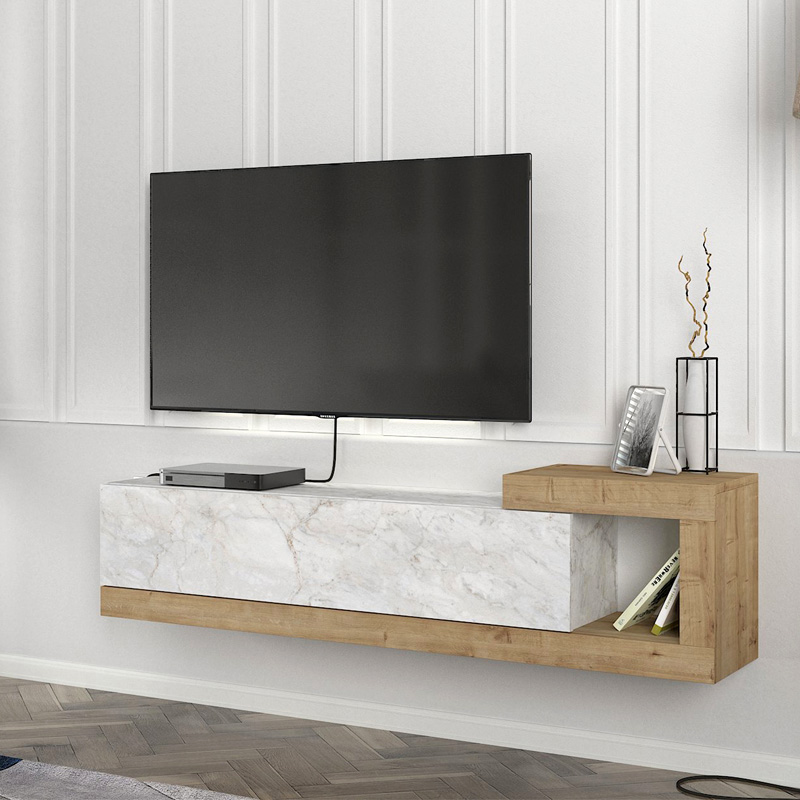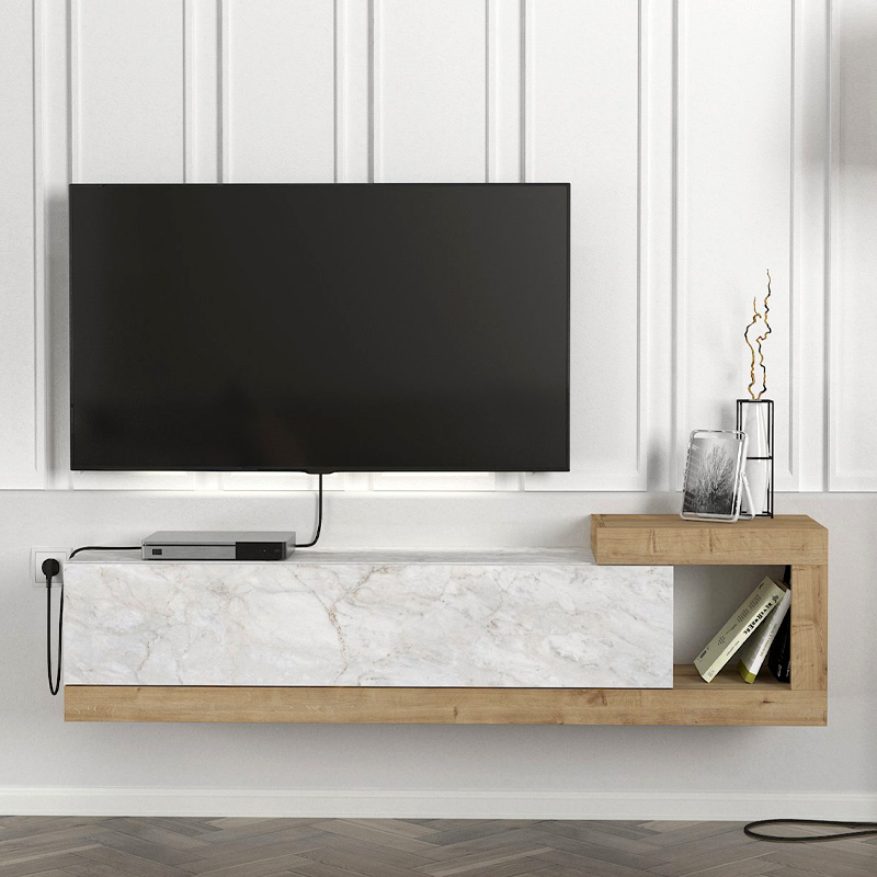 Έπιπλο τηλεόρασης επιτοίχιο Volare Megapap χρώμα λευκό εφέ μαρμάρου – sapphire oak 150×29,6×38,6εκ.