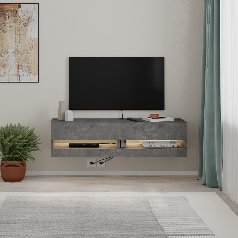Έπιπλο τηλεόρασης επιτοίχιο Moon Megapap με LED χρώμα γκρι ρετρό 120×33,8×30εκ.