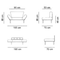 - Διαστάσεις κρεβατιού: Μήκος 190 x Βάθος 53 εκ.